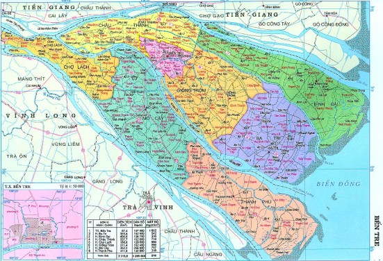 Trường hợp hình thành tên gọi Bến Tre thật đặc biệt, vì đó là sự gán ghép giữa tiếng Khmer và tiếng Việt.Xưa kia người Khmer gọi nơi đó là Srok Treay - srok là xứ,treay là cá. Sau người Việt thay chỗ người Khmer đến sinh sống làm chủ chốn đó, biến chữ srok thành Bến nhưng chữ treay không dịch là cá mà phát âm theo tiếng Khmer thành Tre. Quả tình nơi đó không có tre mà thật nhiều tôm cá.
